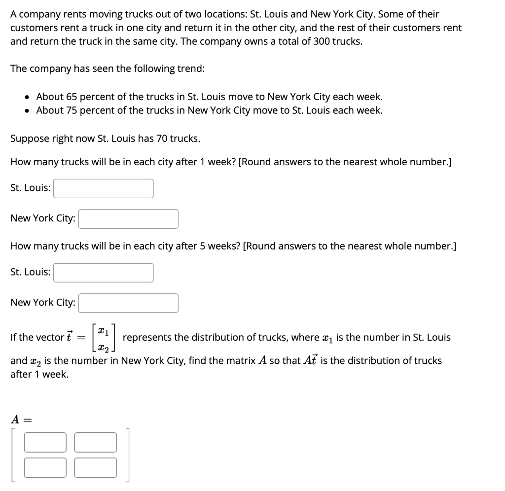 Solved A Company Rents Moving Trucks Out Of Two Locations Chegg Com